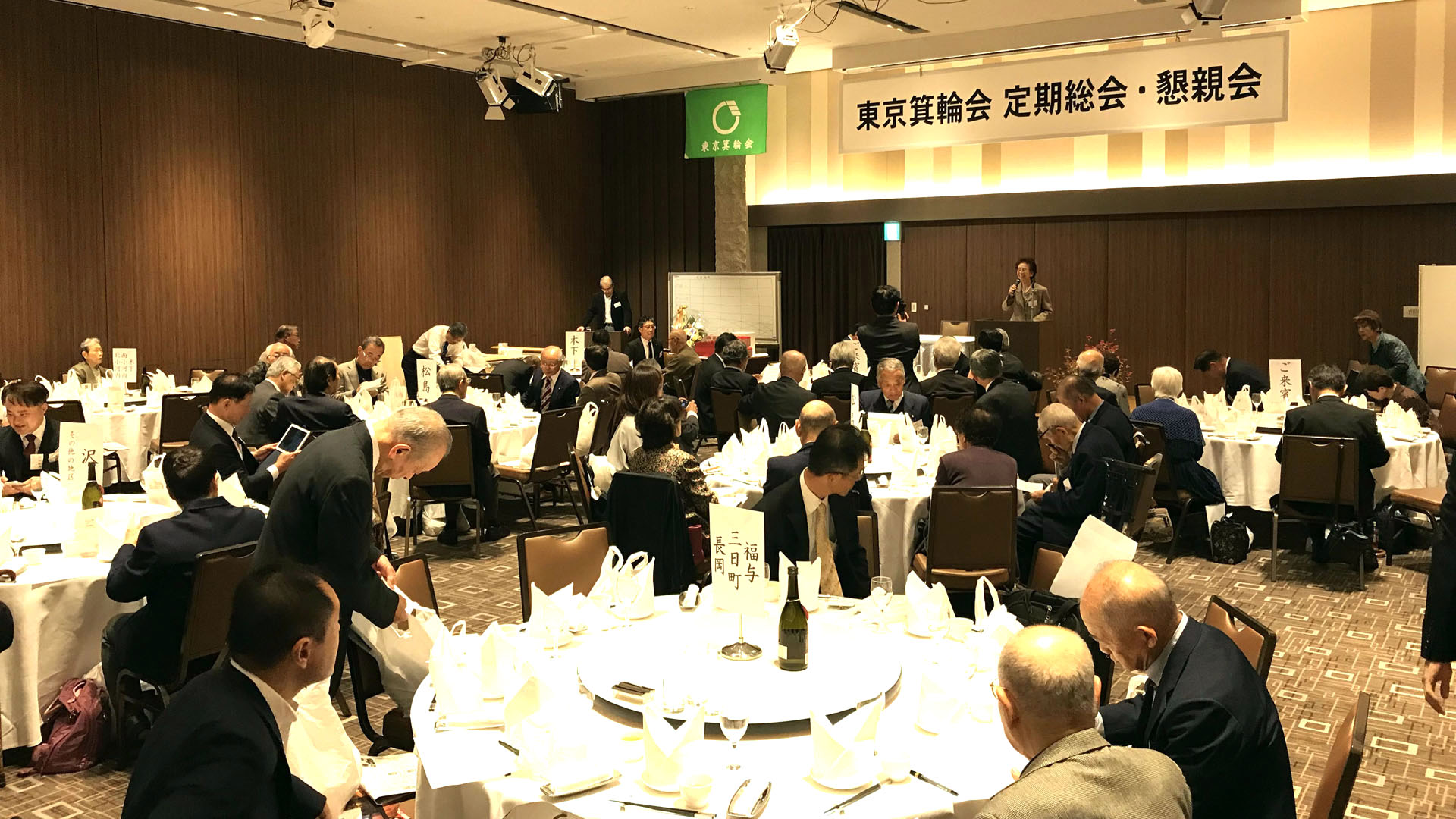年1回開催される定期総会には、関東在住の会員はもちろん、箕輪町町長以下、役場の職員や区会議員のみなさんも出席され、それぞれ地区ごとの丸テーブルに座って、和気あいあいとした時間を過ごします。